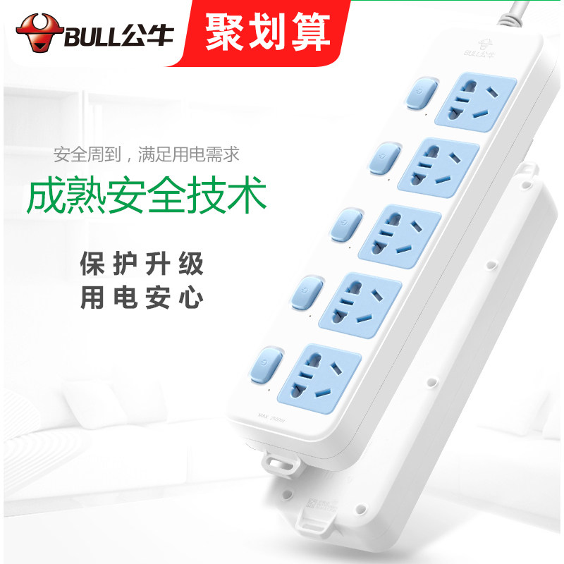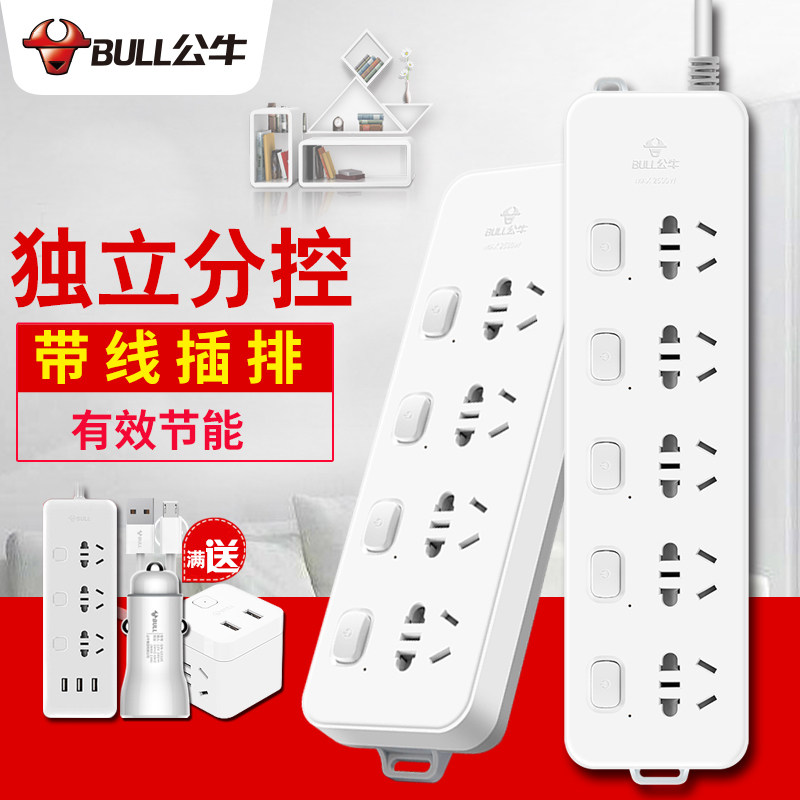 Bull kitchen receptacle panel multi-hole plugging check independent switch multi-function plug board with long wire connection tow board