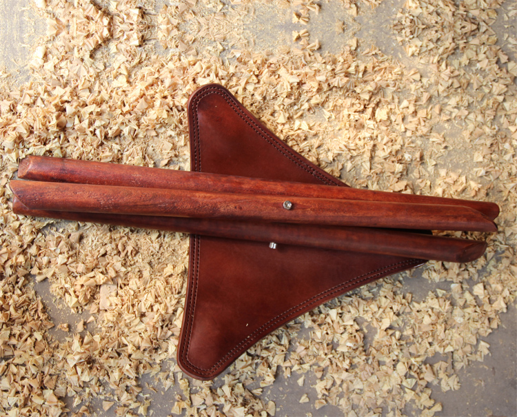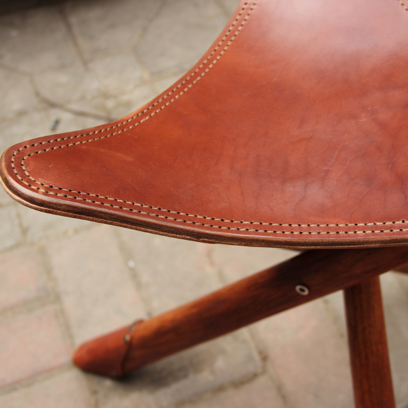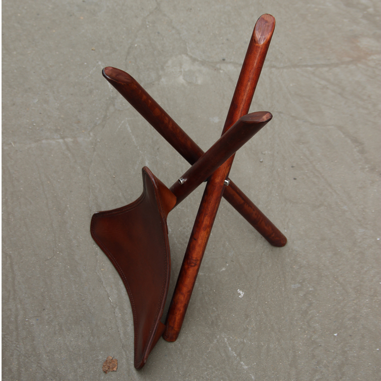 Outdoor cowhide folding stool triangle stool leather handicraft vintage leather maza portable fishing stool