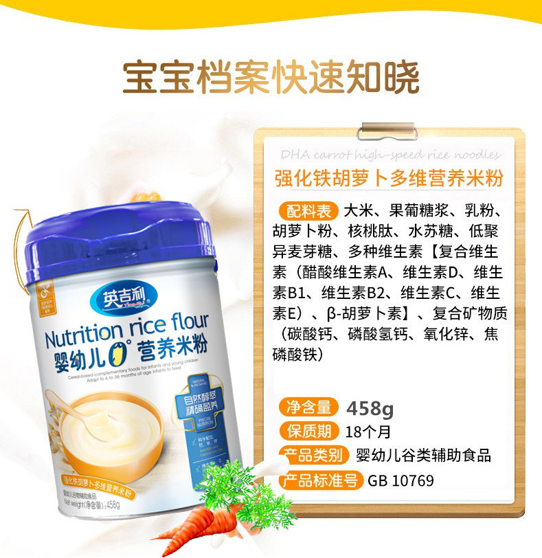 Whole Box Package English Geely Baby Rice Flour Full Section Calcium Iron Zinc Fine Milk Taste Infant Nutrition High Calcium Rice Flour Burnt