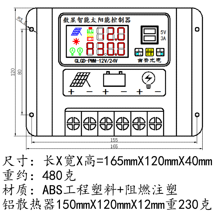 Solar controller 40A 12V24V automatic identification parameters adjustable