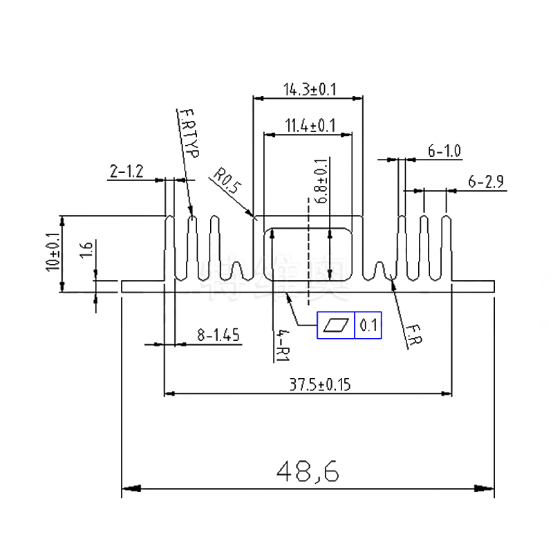 Cooling fins 38 * 10 long 38mm black to ear with rubber nail