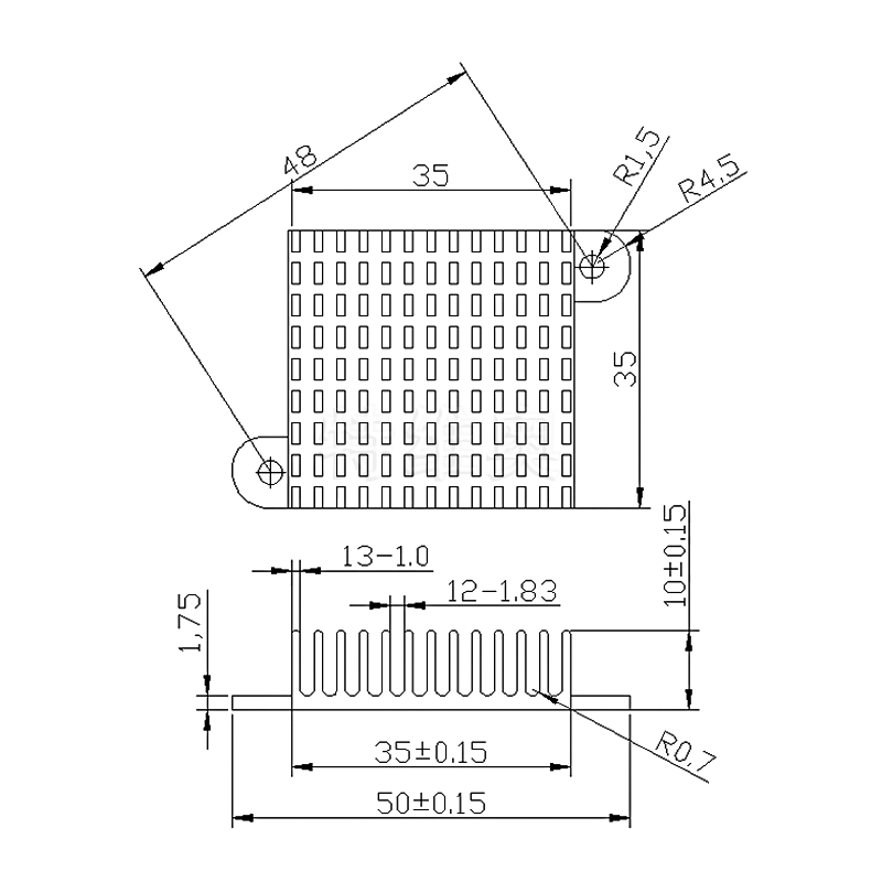 Pure aluminum heat sink aluminum alloy heat sink chip CPU heat sink 35*35*10MM black oxide side ears