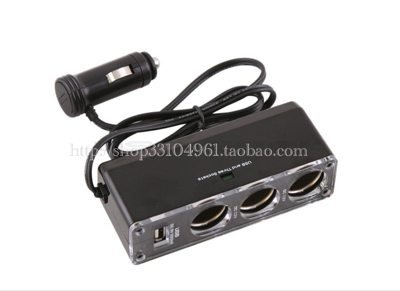 Cigarette lighter 10% Three points cigarette lighter One-to-three-and-three-connector with USB port car to charge 1 minute 3