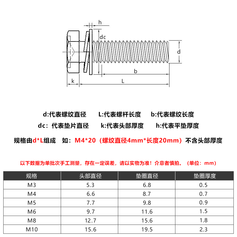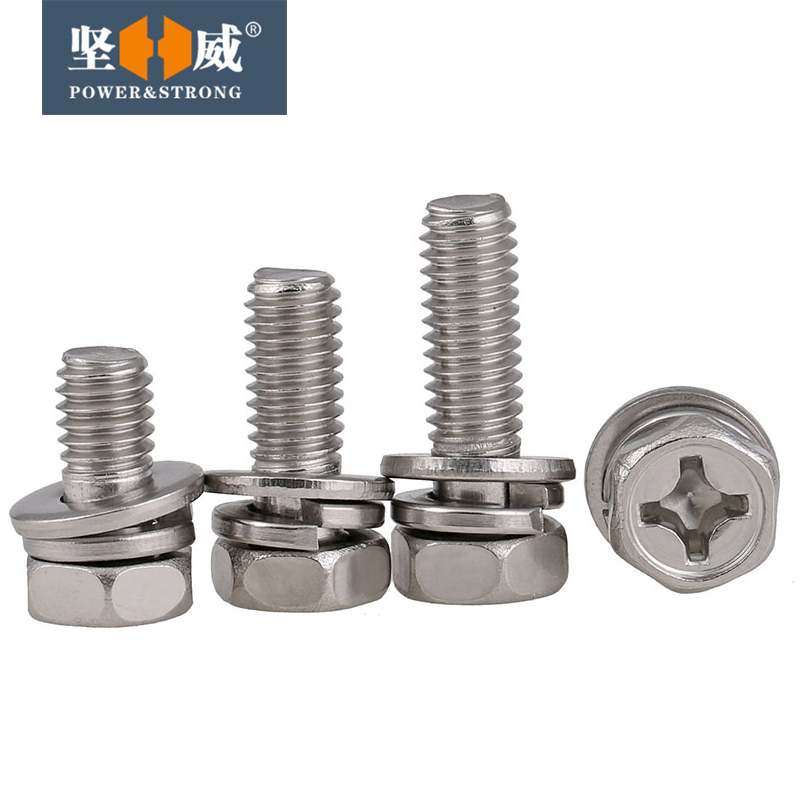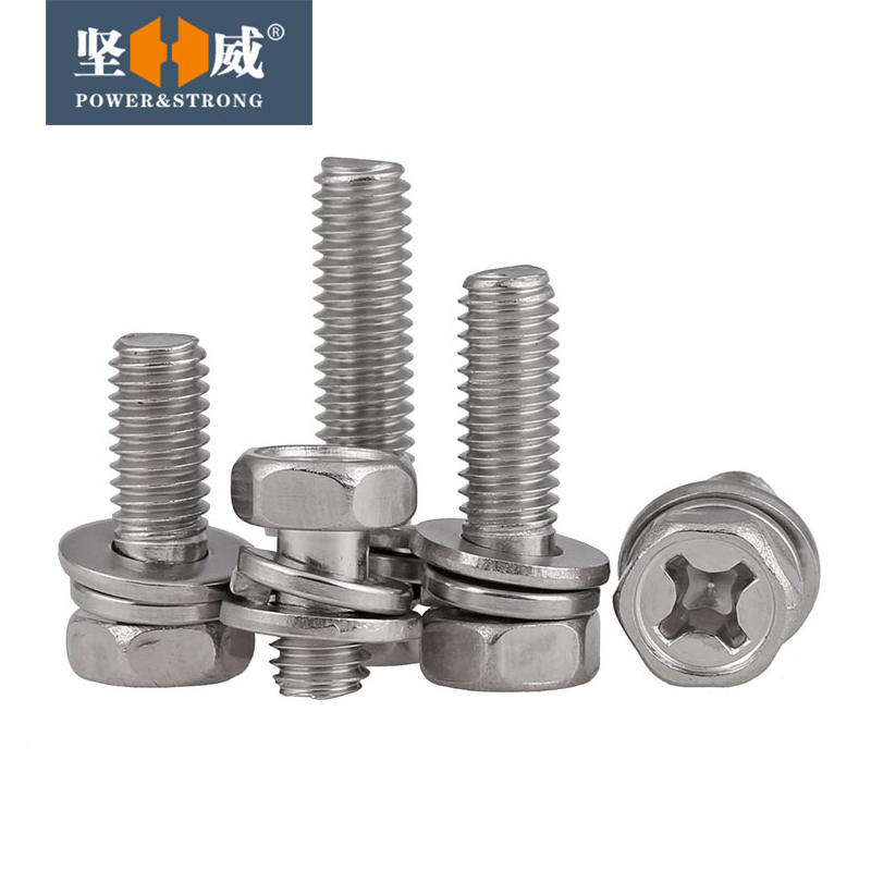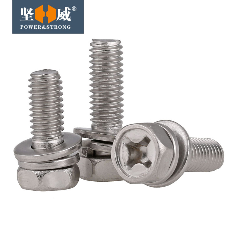 304 stainless steel outer hexagonal cross slot three combined bolt hexagonal head combined screw M3M4M5M6M8M10