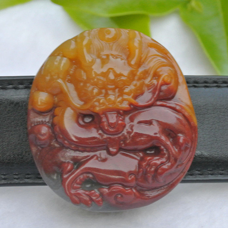 Yellow Dragon Jade Belt Buckle Dragon Walking World Belt Jade Pendant Leather Belt Jade Buckle Men's Waist Pew Card