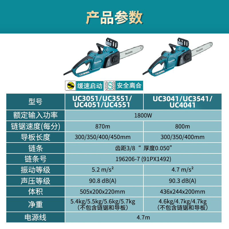 The following is the new chain saw to add safety clutch function UC3051ASP 300MM 12 inch UC3551ASP 350MM 14 inch UC4051ASP 400MM 16 inch UC4551ASP 450MM 18 inches or less for the 5016B alternative chain saw UC3041ASP 300MM 12 inch UC3541ASP 350MM 14 inch UC4041ASP 400MM 16 inches