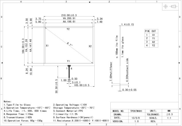 9 7 inches (4:3) Four-wire resistive touch film screen small wire outlet 9 7 inch industrial-grade sensitive resistive touch screen