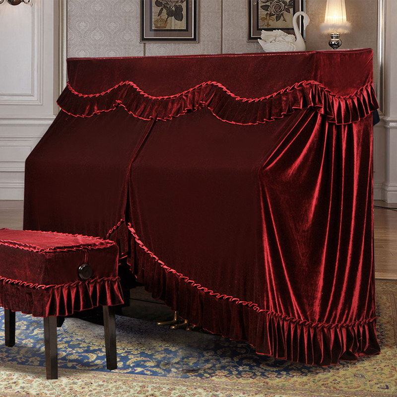 Mengshi high-grade piano cover full cover half cover thickened gold velvet cloth European dust cover Modern simple piano stool cover
