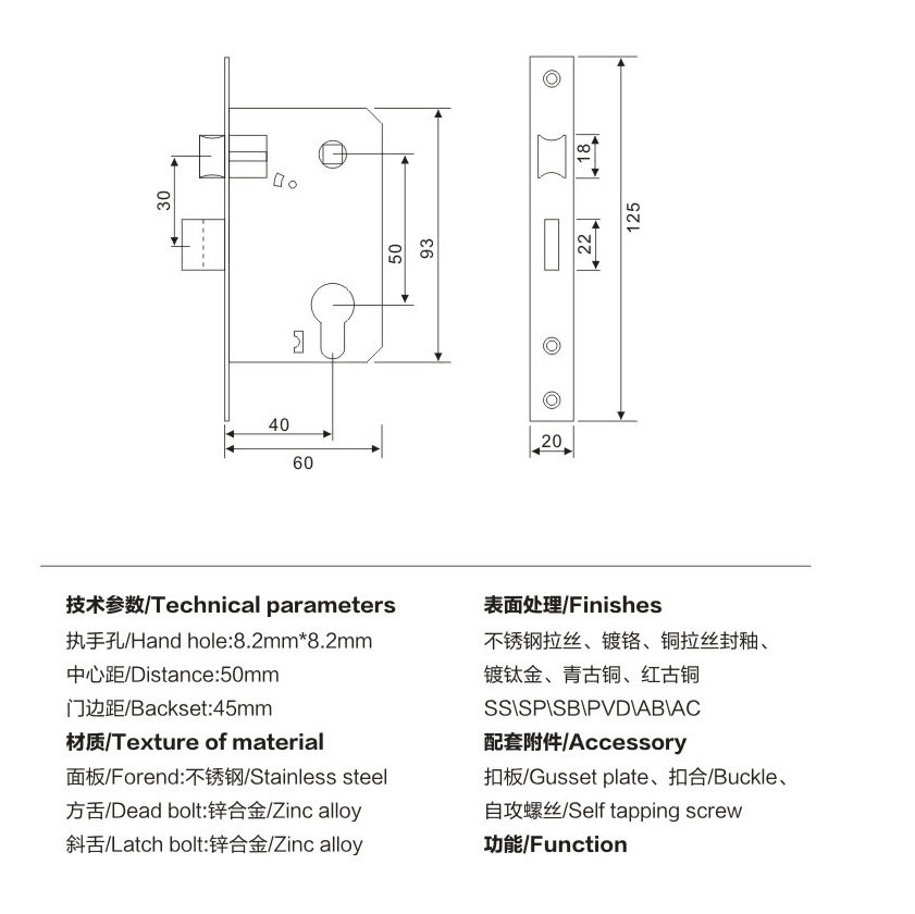 Small 50 stainless steel lock body 125mm 50 lock body 5040 indoor small 50 lock body