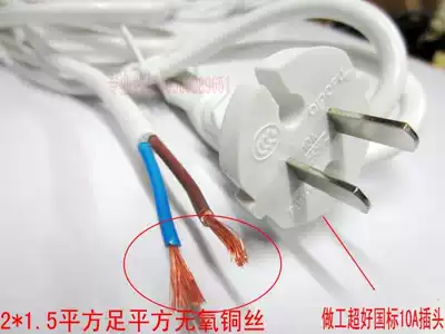 Pure copper two-core white power cord 2*1 5 square 1 5 meters 3 meters two plug power cable with plug two holes