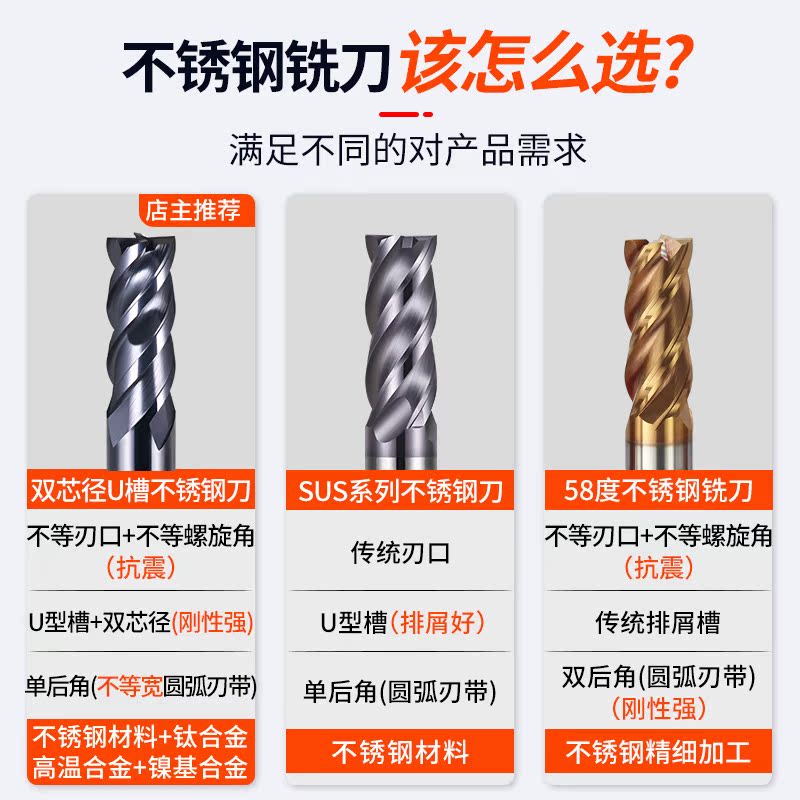XJL stainless steel milling cutter 4 - edge 304 stainless steel titanium alloy high temperature nickel - based alloy milling cutter tungsten steel