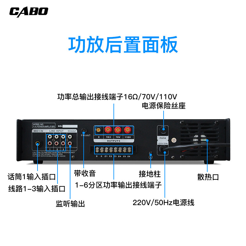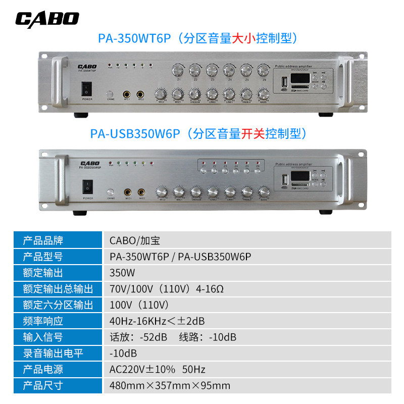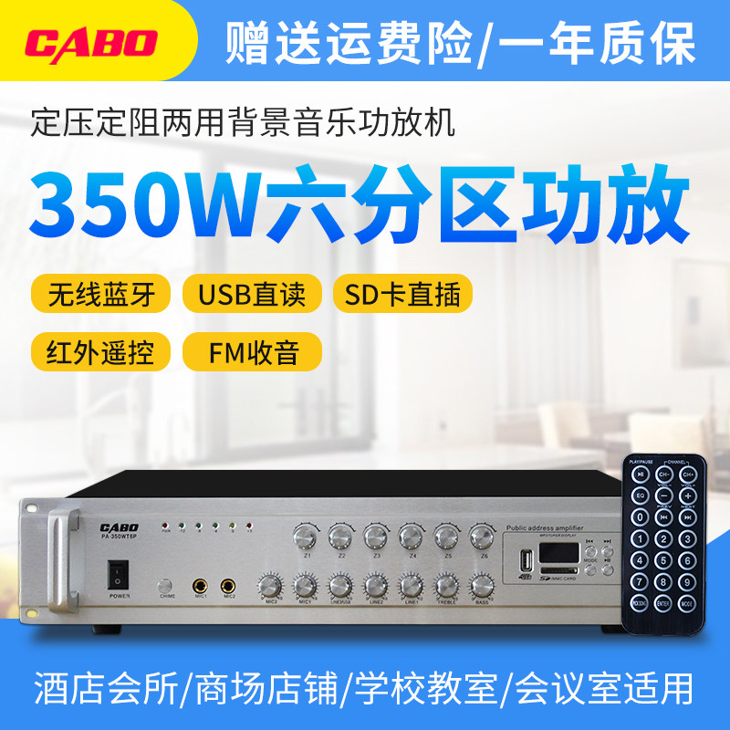 CABO Gababao 350W Constant Pressure Power Amplifier Six Partitions Public Broadcast Power Amplifier With Radio Remote Control USB SD Pick Up