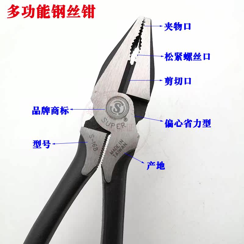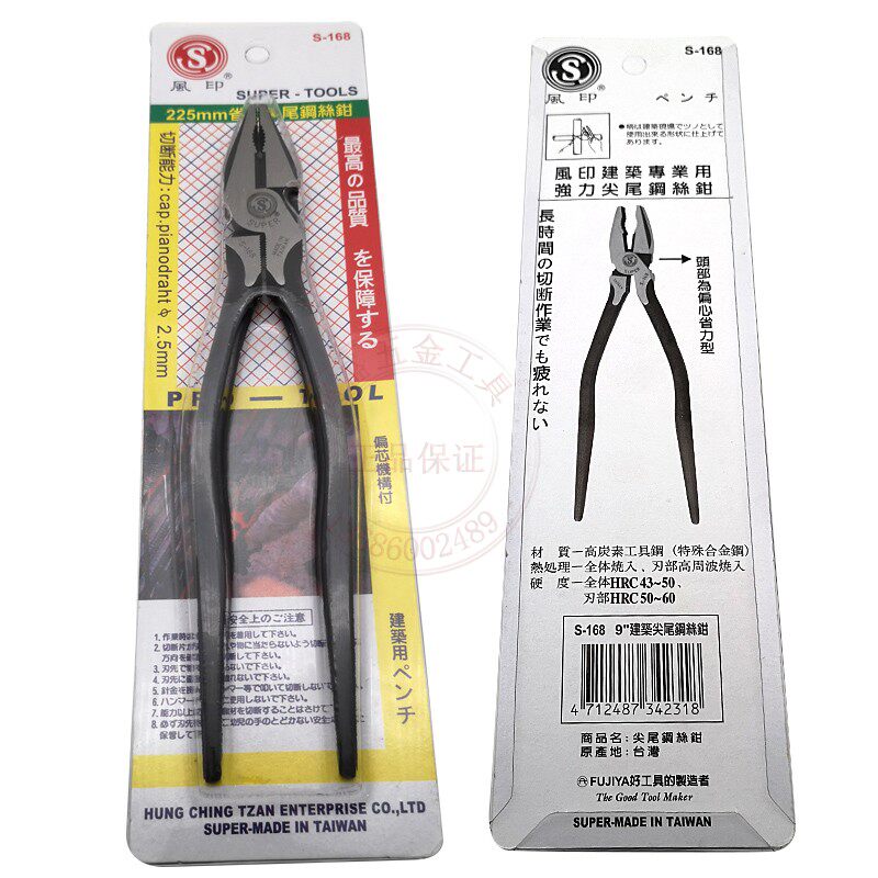 Taiwan Fuguya S-168 construction pointed tail small steel scissors iron handle wire pliers vise multi-function hand pliers