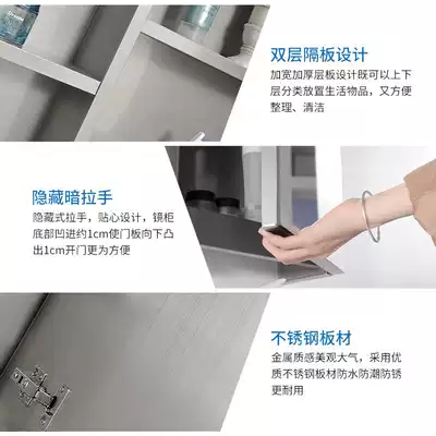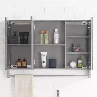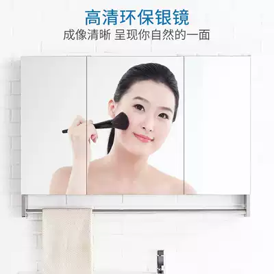 Stainless steel mirror cabinet with towel bar wash table bathroom storage mirror cabinet wall storage mirror box custom