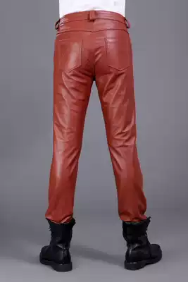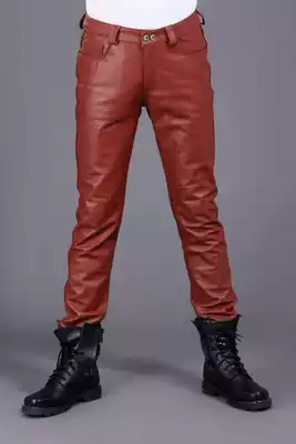 Original design custom-made calfskin slim-fit plus velvet thickened warm leather pants men's motorcycle riding windproof leather pants