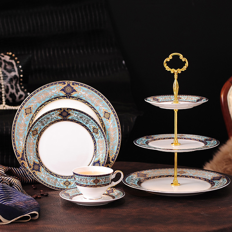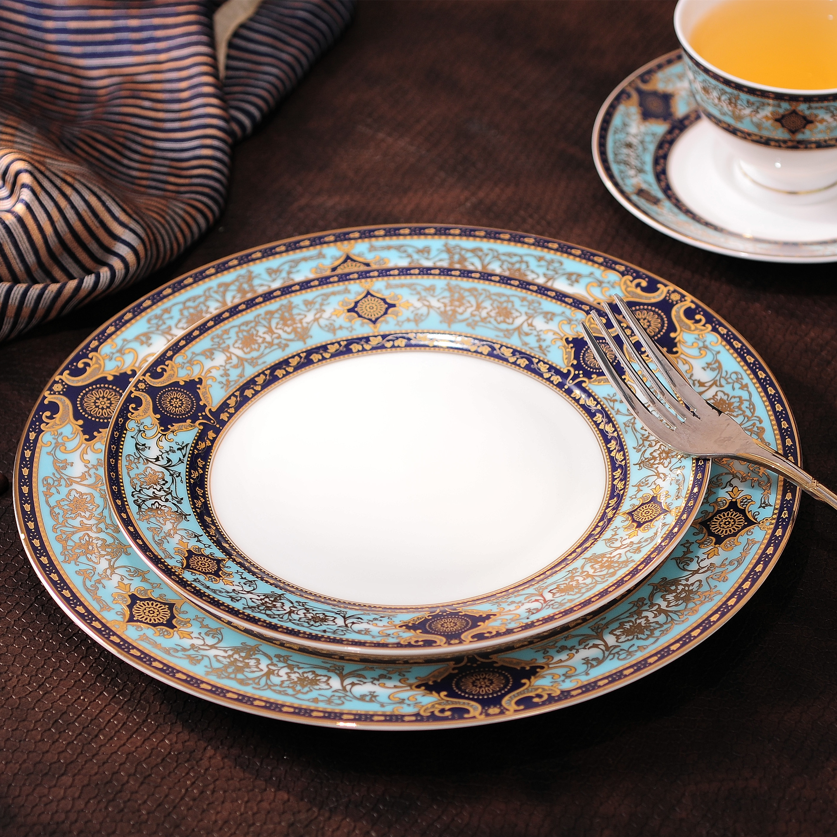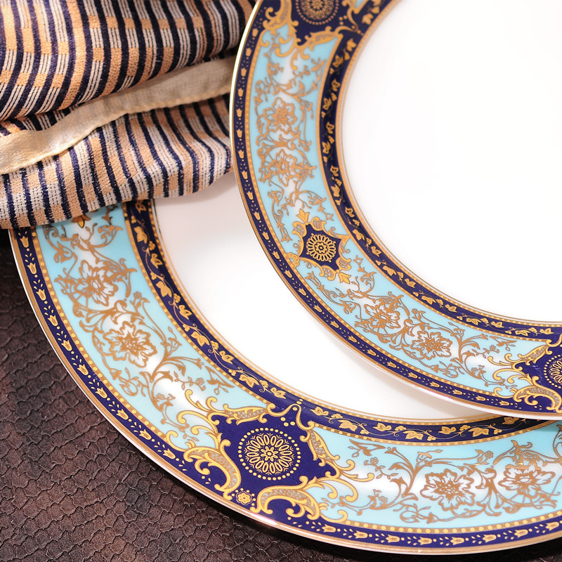 Bone china steak plate Western plate Household flat plate European plate plate Round Western fruit plate tableware