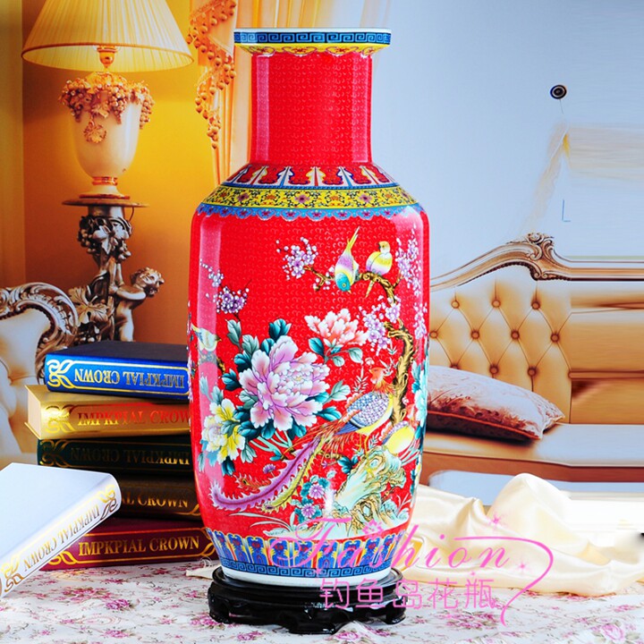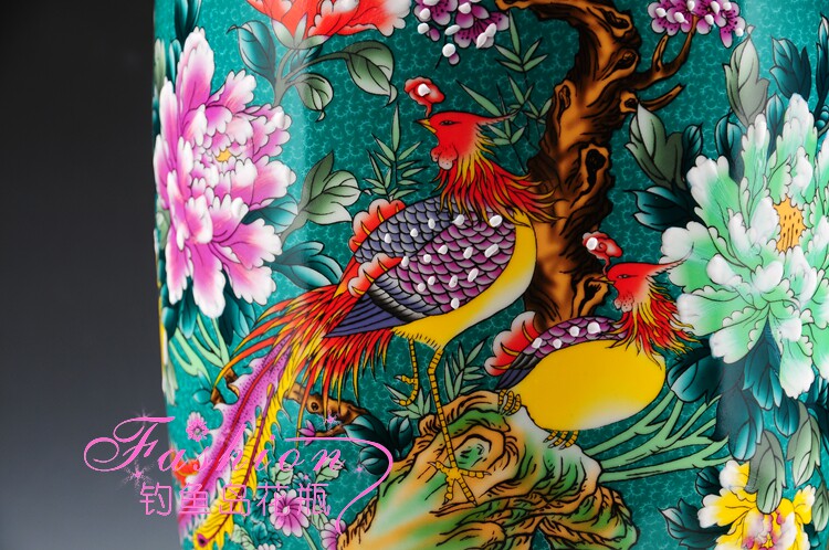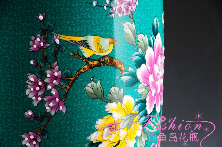 Jingdezhen ceramic vase Mudan flowers bird picture flowers open rich and expensive living room upscale home floor big number new house swing piece