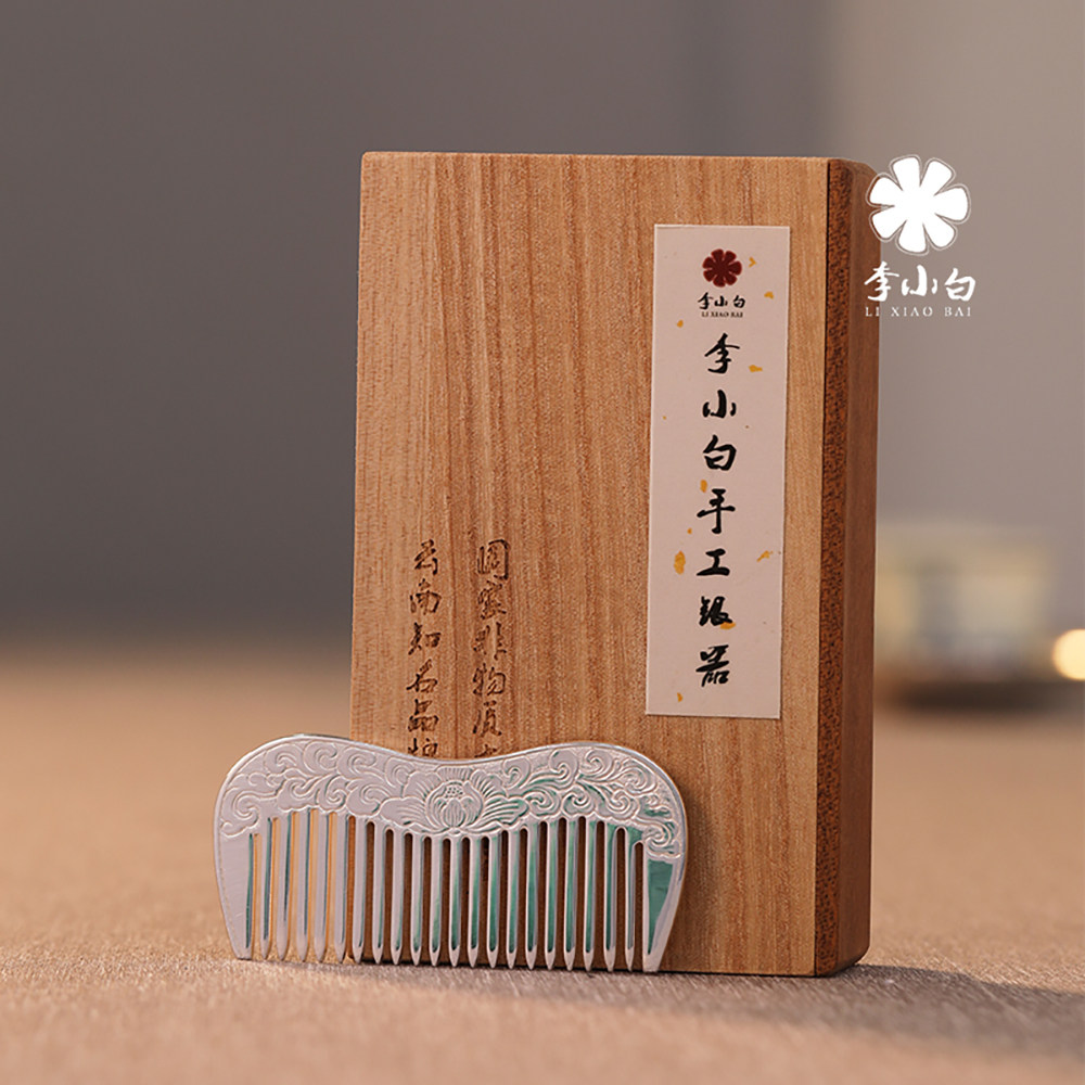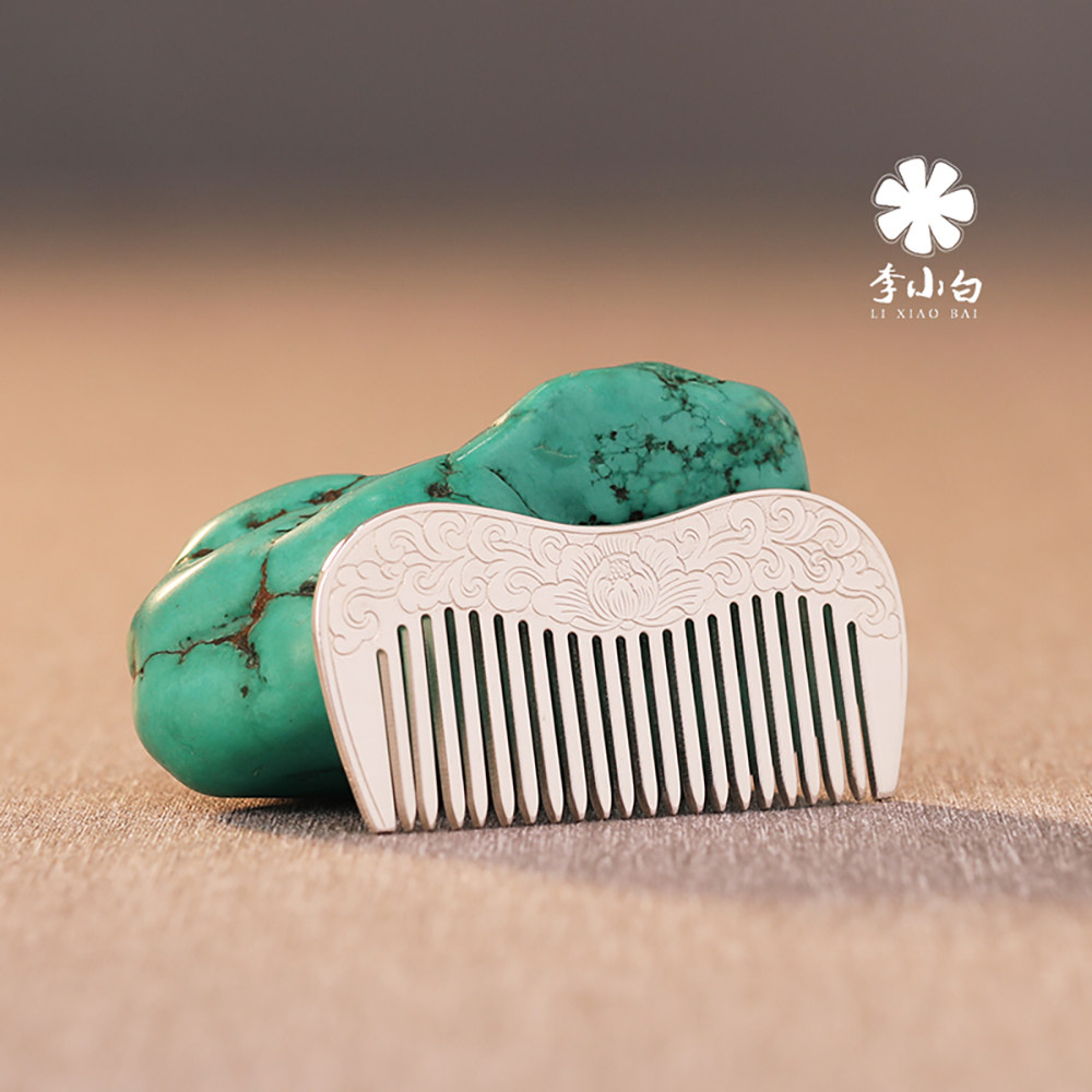 Li Xiaobai 9999 sterling silver comb moon arc sterling silver comb pure hand hammered hair care comb
