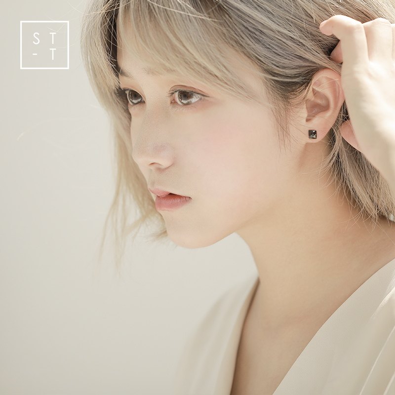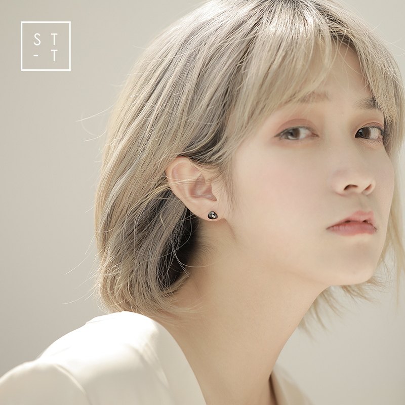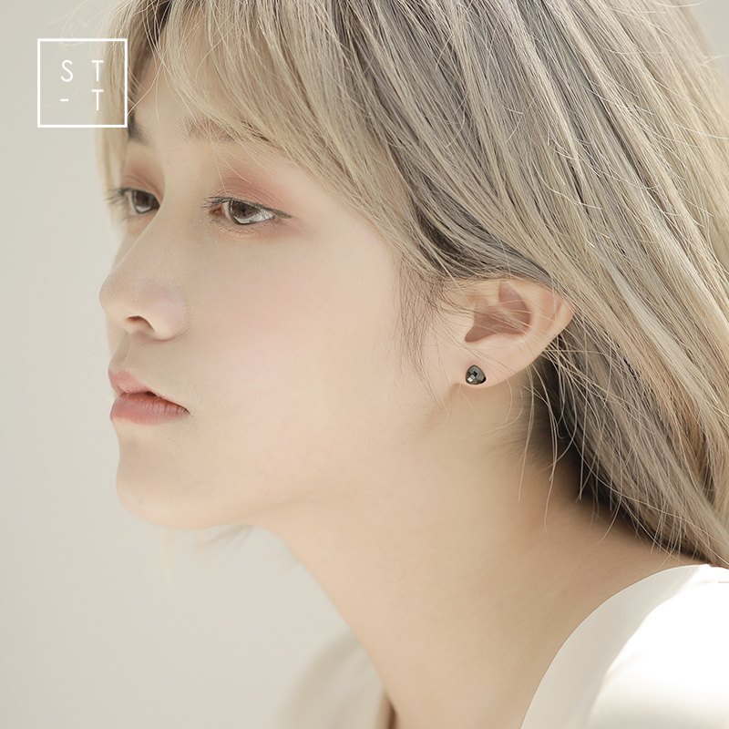 t Shen's wife S925 pure silver ear decoration day Korea fashion couple earshot female brief black imitation manau ear pin male