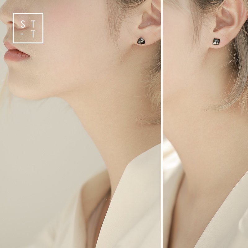 925 silver black side one triangular ear pin (2 only) 925 silver black square ear pin (2 only) 925 silver black triangular ear pin (2 only)