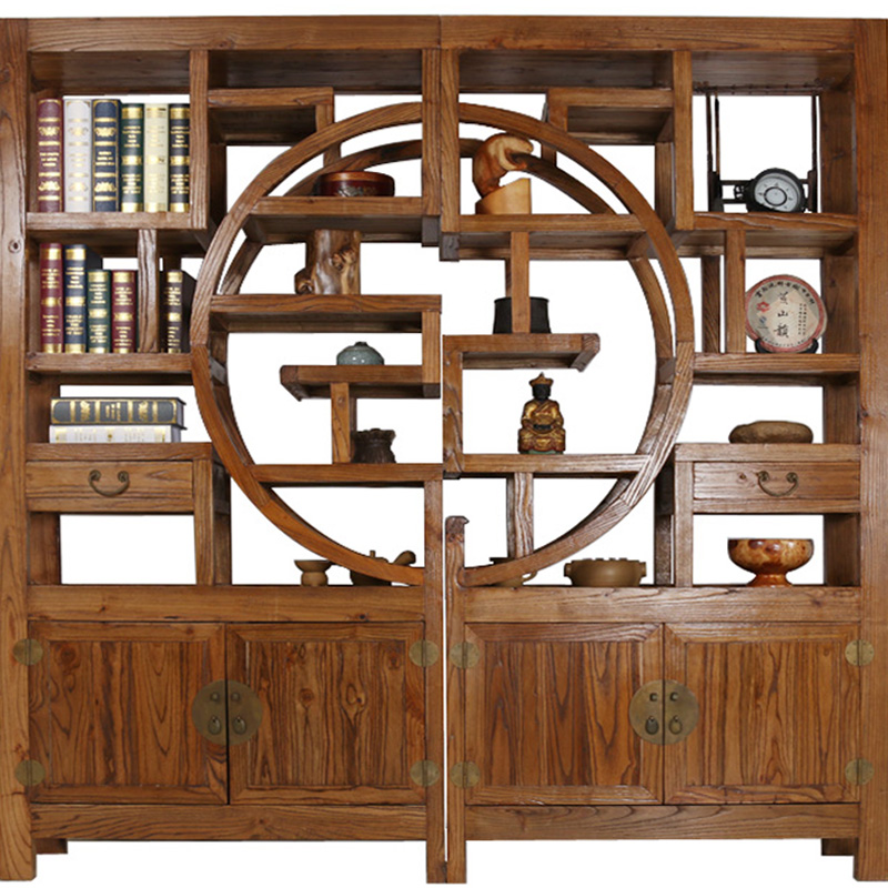 Chinese Solid Wood Bou Ancient Shelf Bookshelf Partition Screen Background Wall Hotel Hall Fashion Log Furniture Manufacturer
