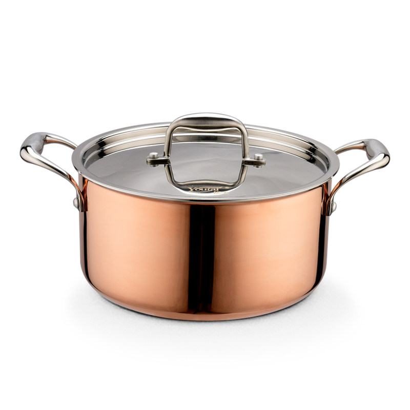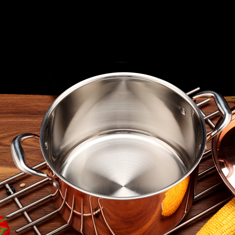 Yuca non-coated three-layer copper 304 stainless steel soup pot thickened pot with double-eared hot pot stew non-stick 24cm