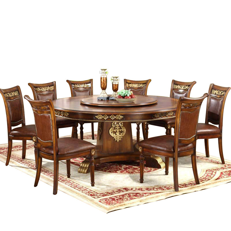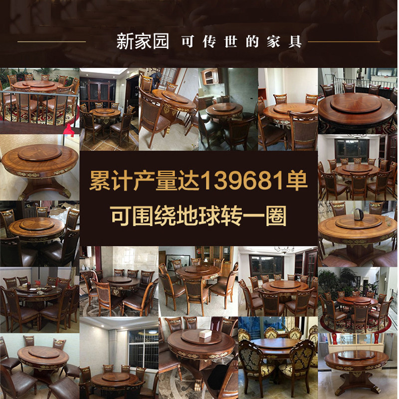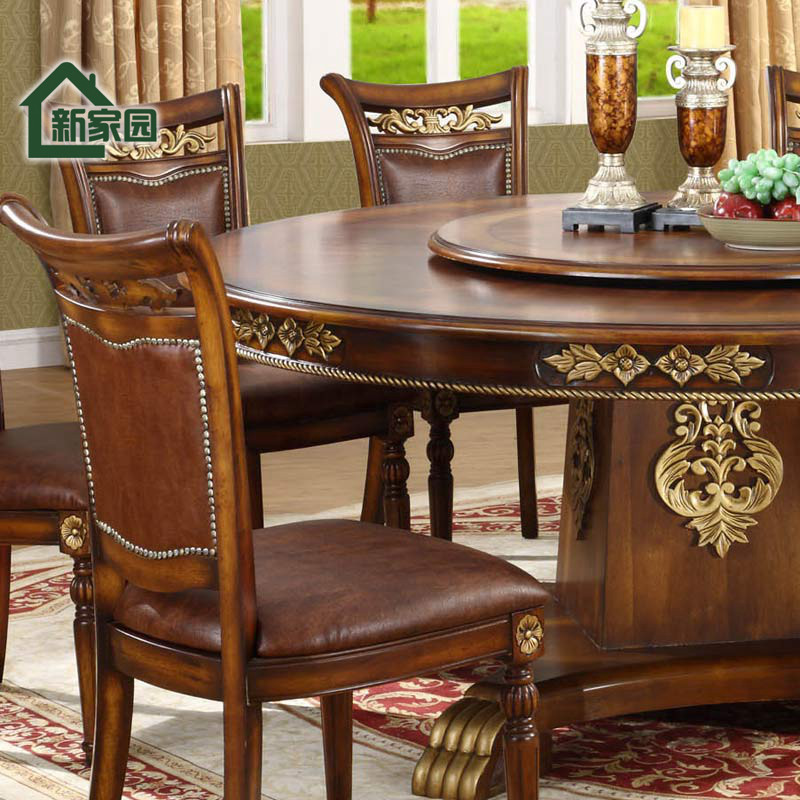 European-style round solid wood dining table and chair combination living room with turntable big dining table 1 8 meters American dark dining table