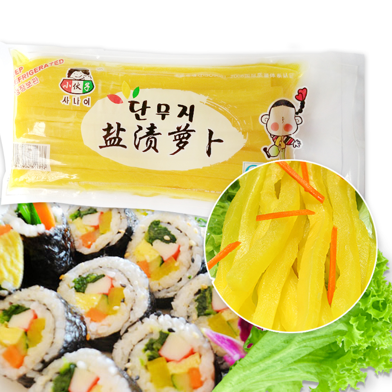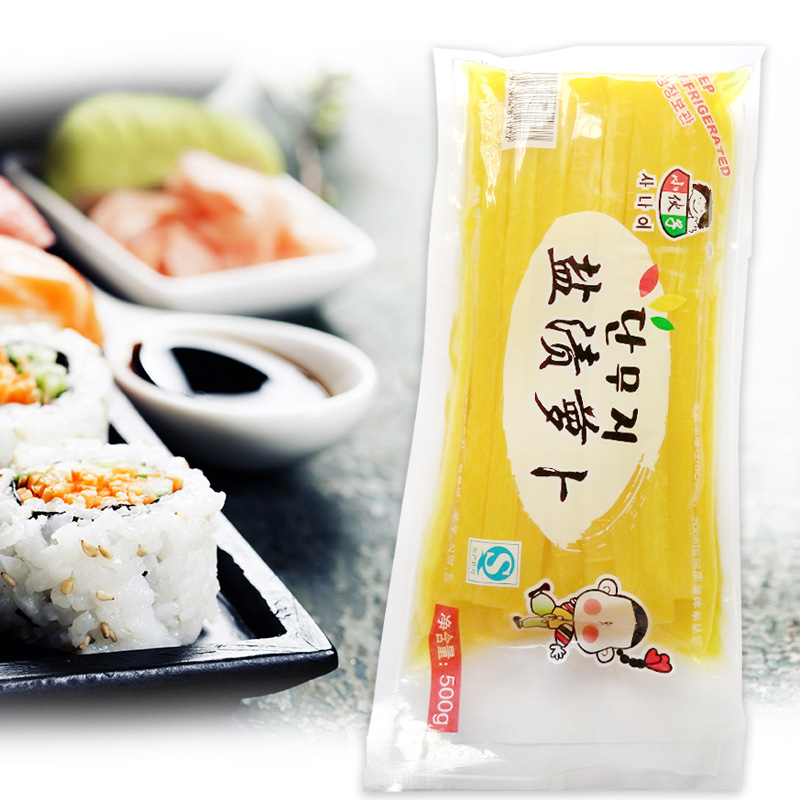 Han-style young man's yellow rounder bar sushi with salted roperin purple vegetable wrapped meal with 500g cut of good strip