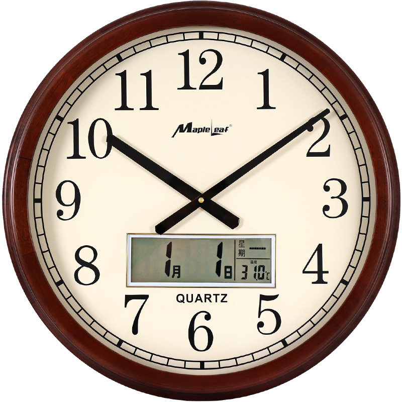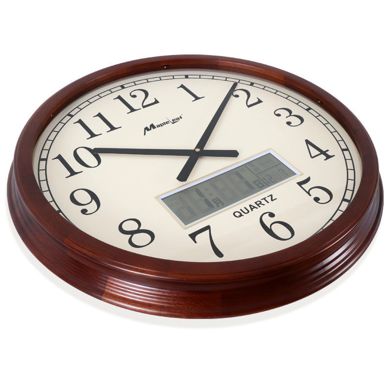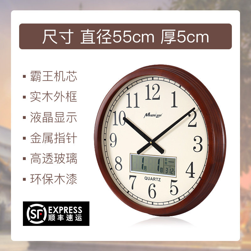 European round perpetual calendar wall clock living room large solid wood modern simple clock mute clock modern wall clock