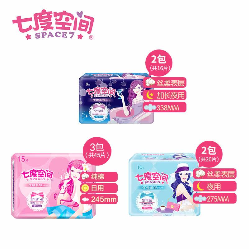 Seven Degrees Space Sanitary Cotton Elegant Series Miansoft Aunt Towel 7 Packs 81 slices 3rd 4 Night Privacy Packaging