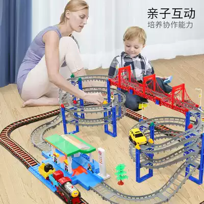 Train toys track children's boy trembles with the same type of big adventure electric harmony rail car set toys