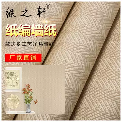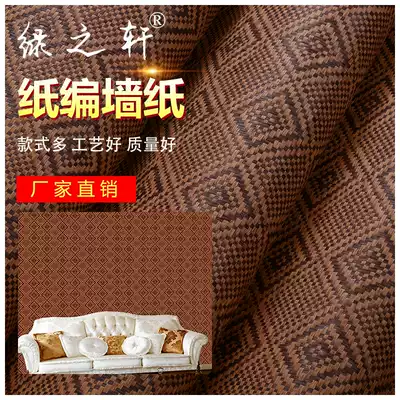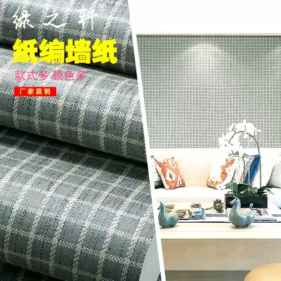 Pure natural environmental protection straw wallpaper dark gray small plaid wallpaper Chinese classical Teahouse living room TV background wall
