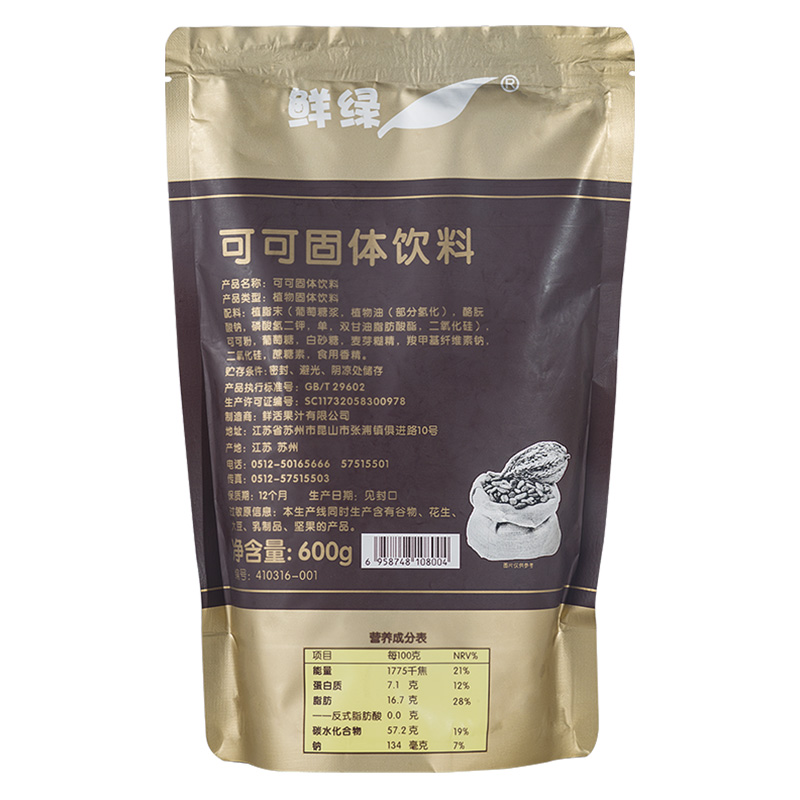 Fresh Green Cocoa Powder 600g FRESH HOT FLUSH BEVERAGE INSTANT POWDER CHOCOLATE POWDER PEARL MILK TEA SHOP BAKING SPECIAL RAW MATERIAL