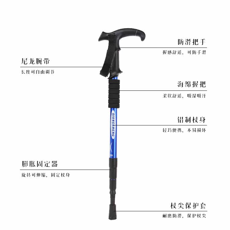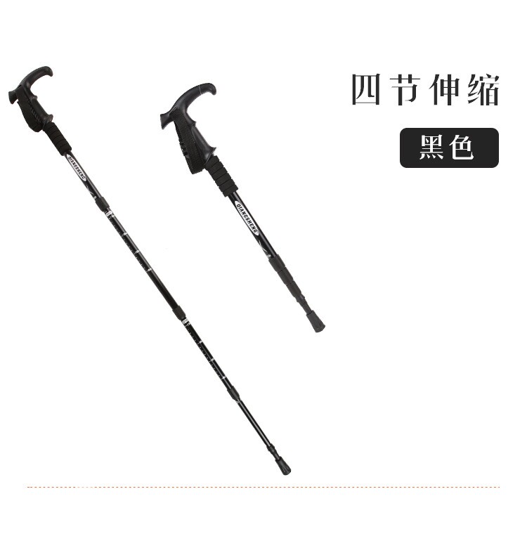 Four Sections T Handle Ultra Light Mountaineering Stick Outdoor Hiking Sports Straight Shank Cane Aluminum Alloy Shrink Walking Stick Anti Slip Shock