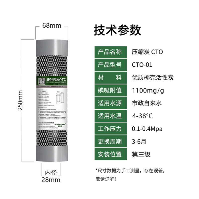 10-inch coconut shell compressed activated carbon water purifier filter element household RO reverse osmosis pure water machine direct drinking CTO front