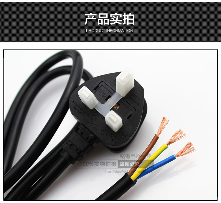 Pure copper Infoul power cord 3 * 1 5 squared 1 8 m 3 m English gauge 13A with plug connection line with fuse