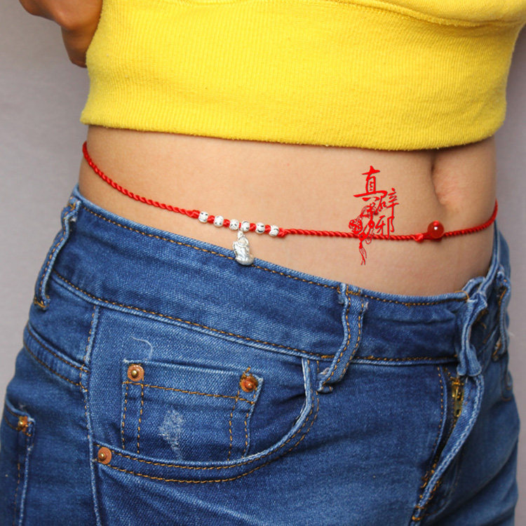This Life Year Red Rope Waist Bracelet Foot Silver 999 Pure Silver Leopard Leopard Hand Woven Red Belt Waist Rope Recruitty transfer