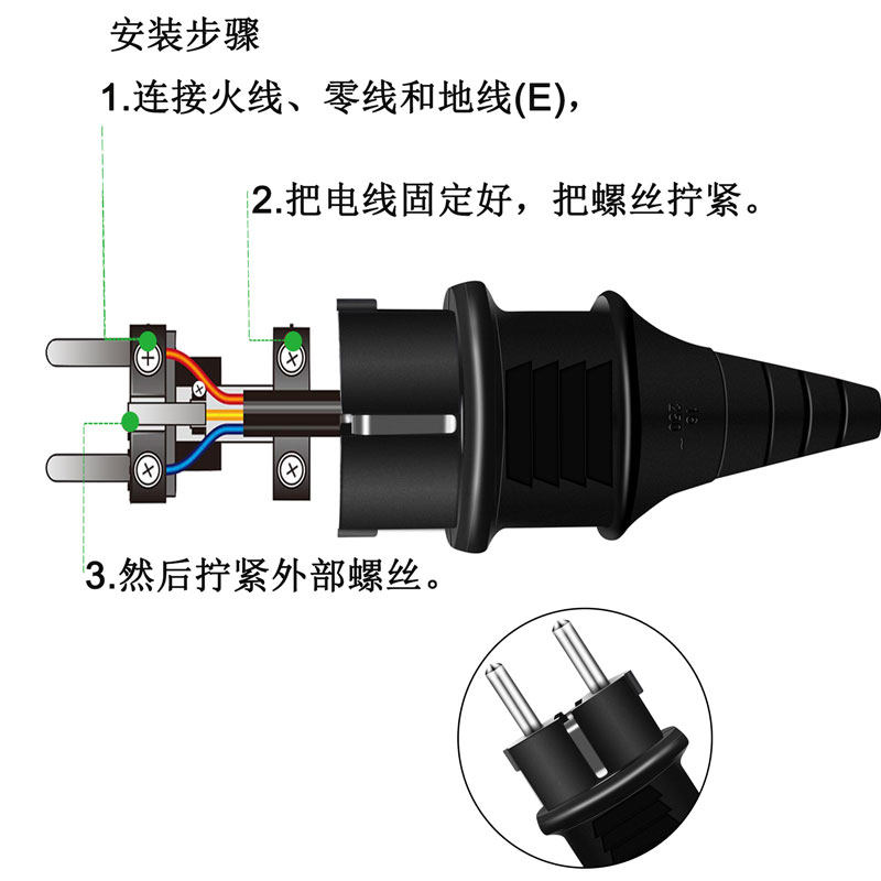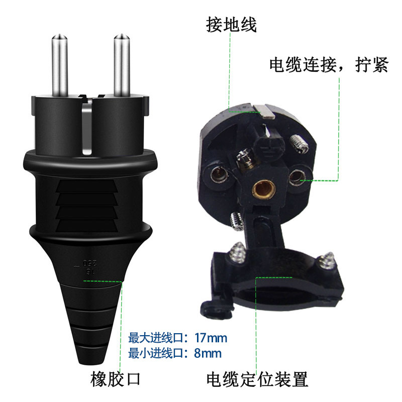 Fan-style power plug 16A250V De Peueaux type two round European gauge wiring plug with CE certified European label joint