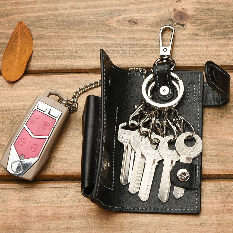 Men's leather car key bag universal mini simple creative personality key bag Large capacity multi-function key bag
