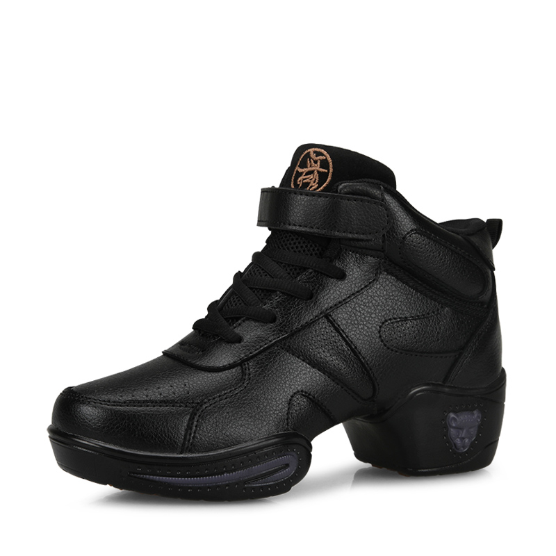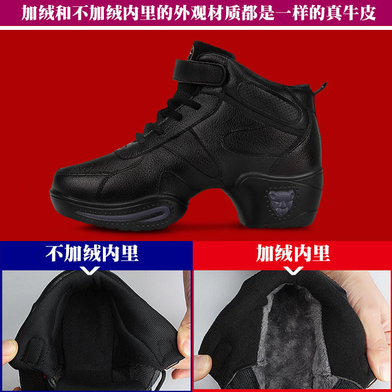 Beautiful Ni four seasons leather square dance women's shoes medium heel high heel soft sole dance shoes female adult jazz dance shoes spring