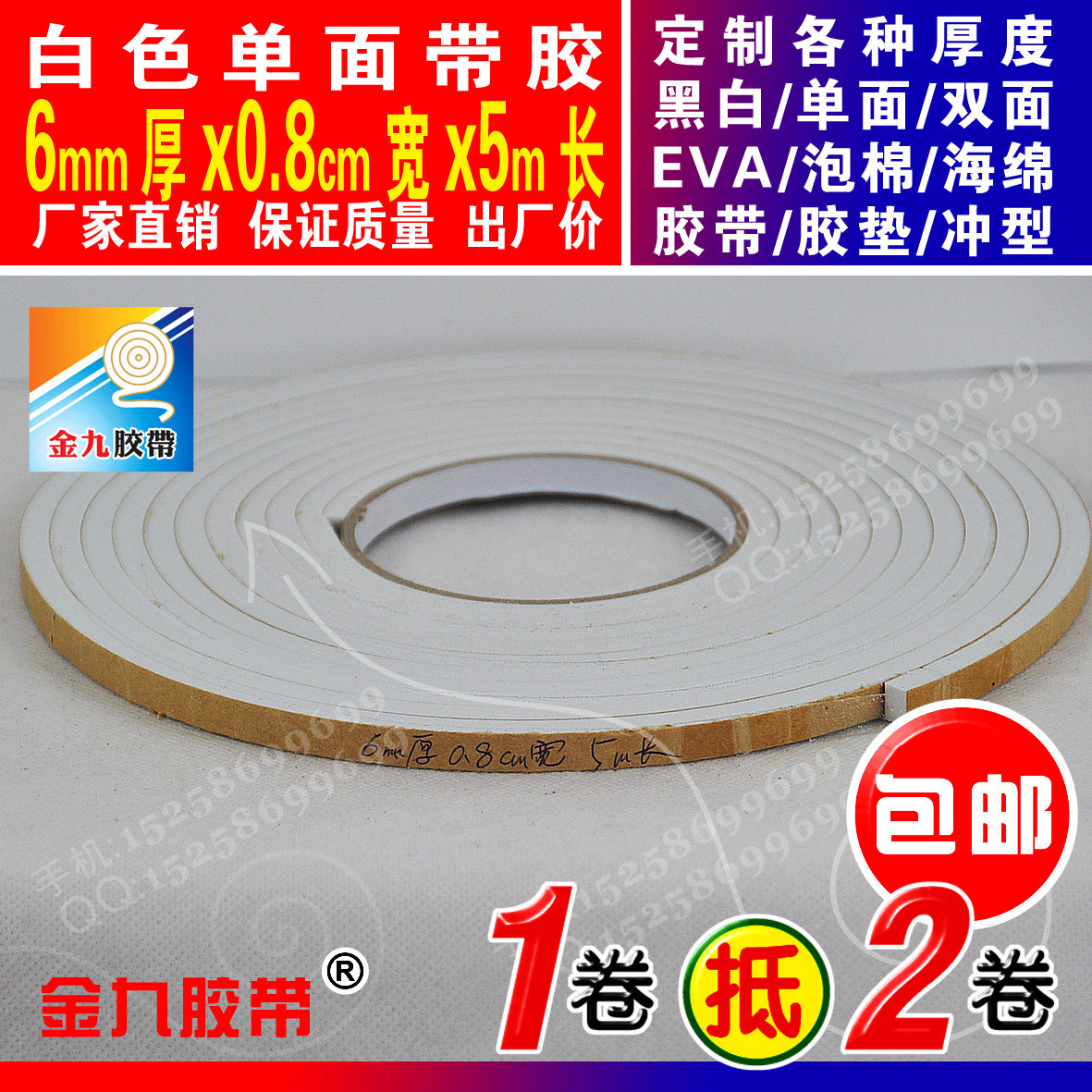 White single-sided EVA foam sponge adhesive tape foam shockproof adhesive tape Anti-collision strips 6mm thick x0 8cm Width x5m Long