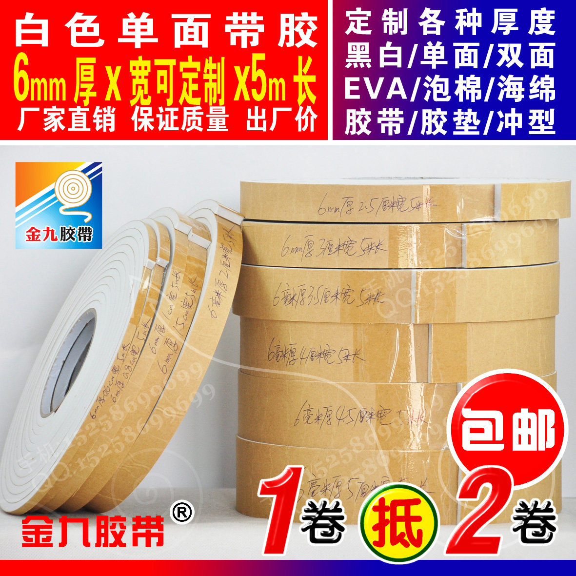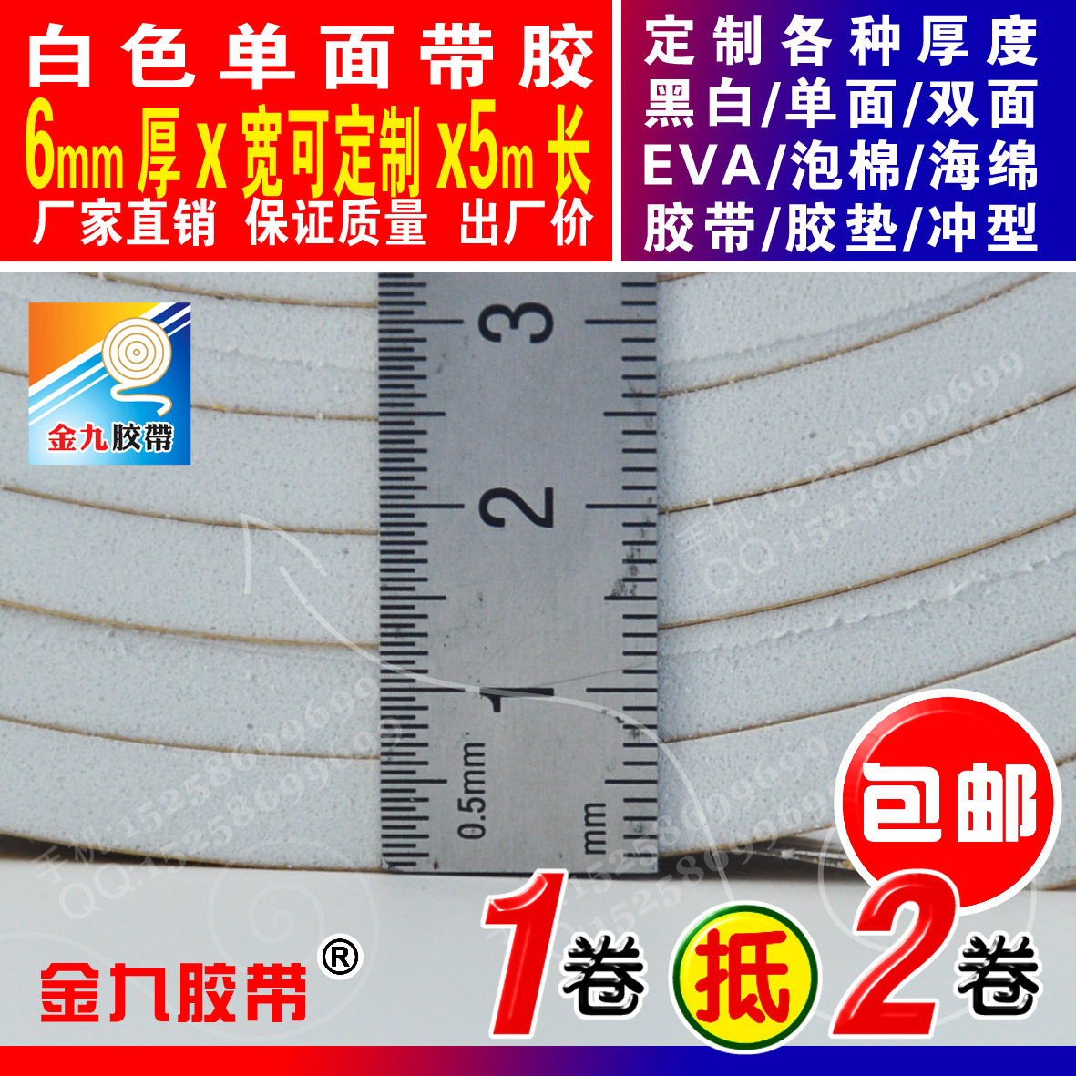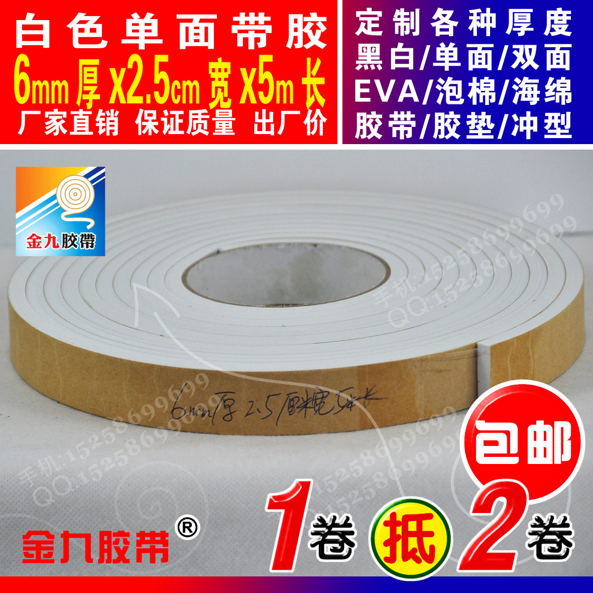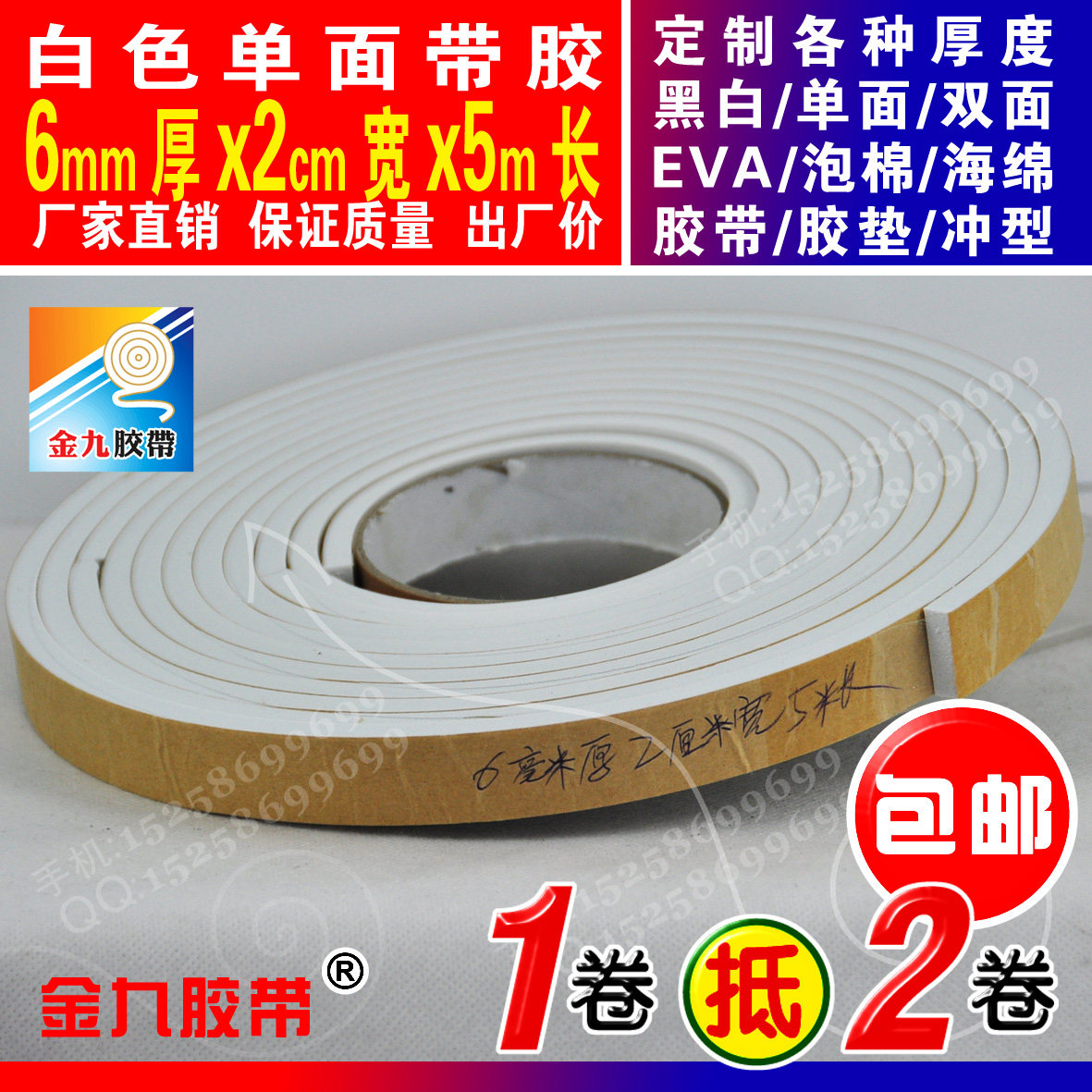 White single-sided EVA foam sponge adhesive tape foam shockproof adhesive tape cushion Anti-collision strips 6mm thick x2cm Width x5m Long