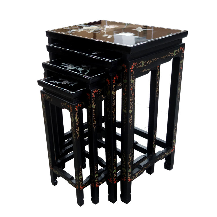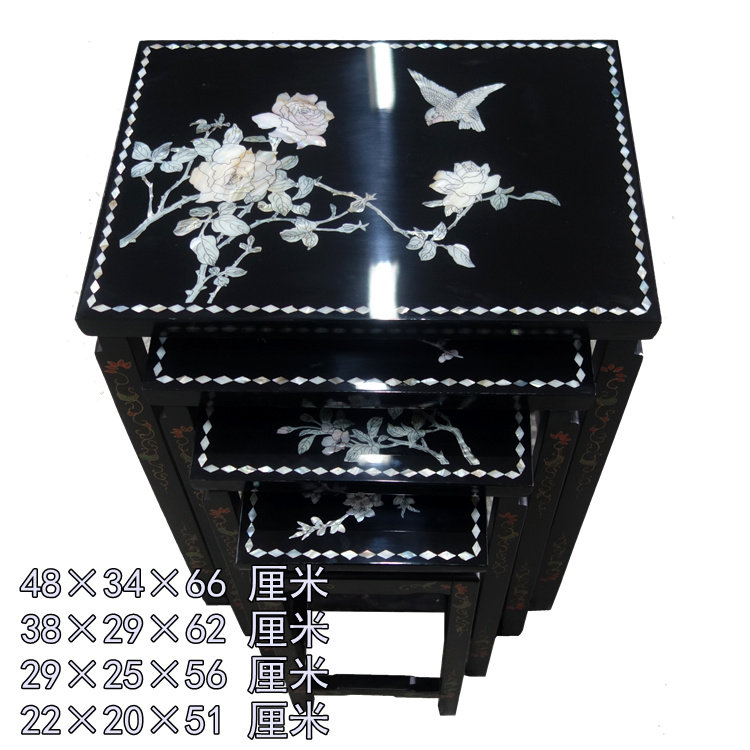 Lacquer art shell inlaid snail flower bird flower table 4 sets of flower stand Yangzhou lacquerware new Chinese classical home decoration