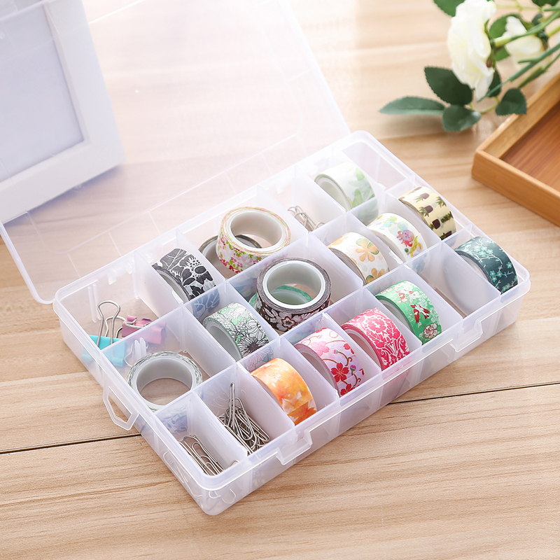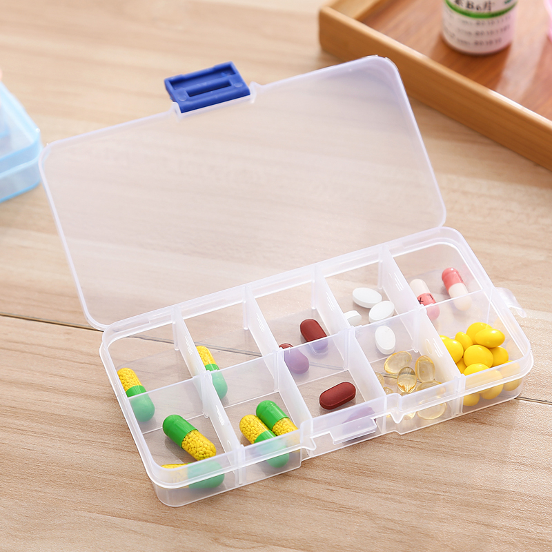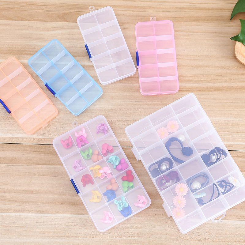 Practical Korean transparent plastic jewelry box Small lattice storage box Medicine box Portable hand decoration box Jewelry box