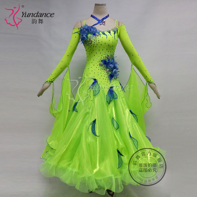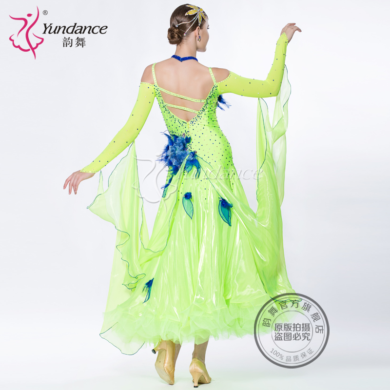 Rhyme dance new national standard ballroom dance dress modern dress competition performance waltz big swing skirt feather custom performance