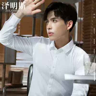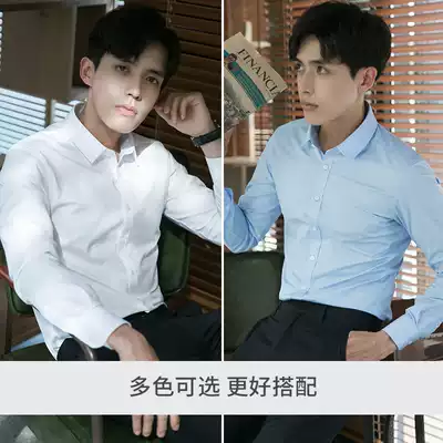 White shirt men long sleeve Korean version of slim youth work clothes business dress simple men's shirt 2021 Spring