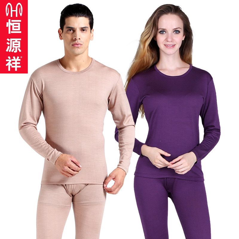 Hengyuanxiang wool heating pants men's pure wool solid color round neck V-neck thin bottoming autumn clothes sanitary pants