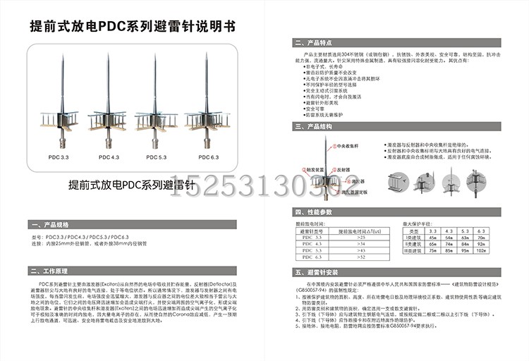 PDC4 3 3 3 5 3 advance discharge lightning rod lightning terminal optimized lightning rod 304 stainless steel