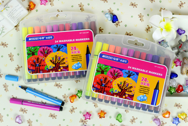 Marco 1232 watercolor pen 36 colors 24 colors children's triangle thick rod washable painting pen children graffiti color pen