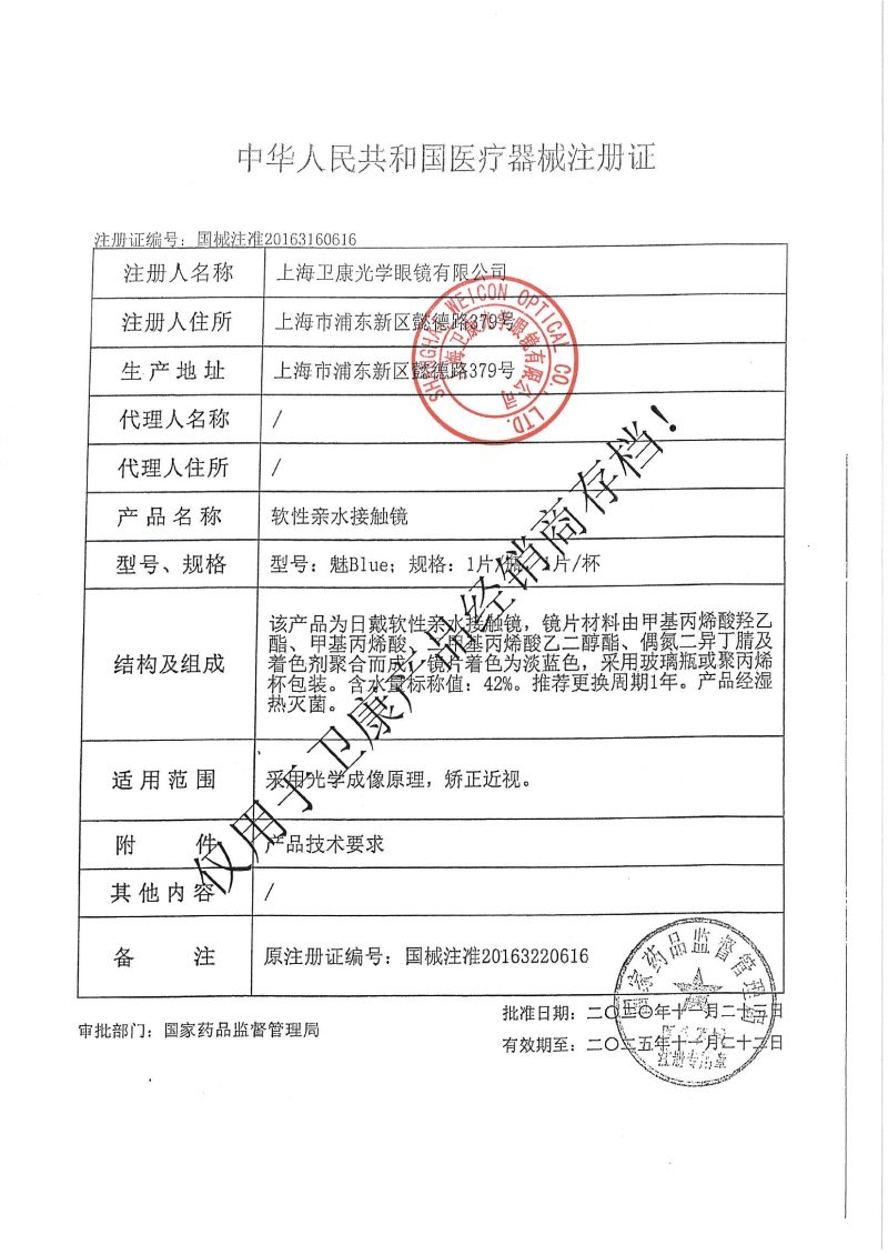 Weikang Jinkang charm BLUE contact myopieces annually throws 2 pieces of oxygen permeability high luminosity thin official flagship store KD